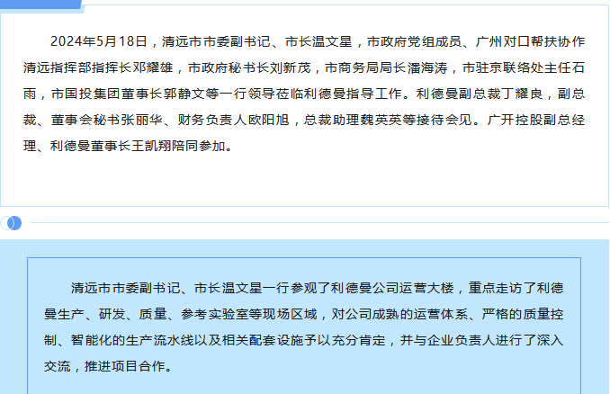 清远市市委副书记、市长温文星一行 莅临平博买球指导工作